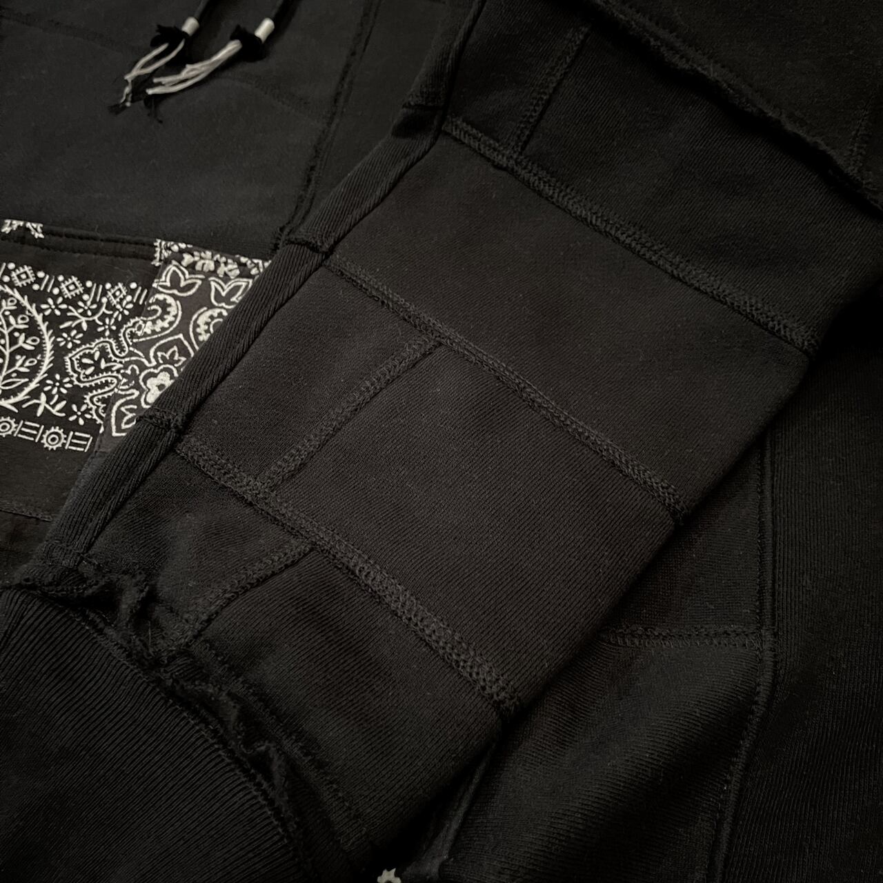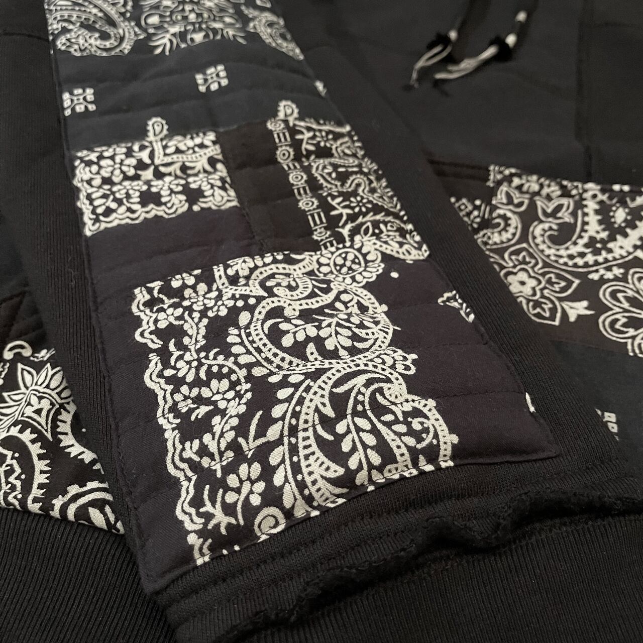 USEDのバンダナに中綿を入れてキルティングしたエルボーパッチや