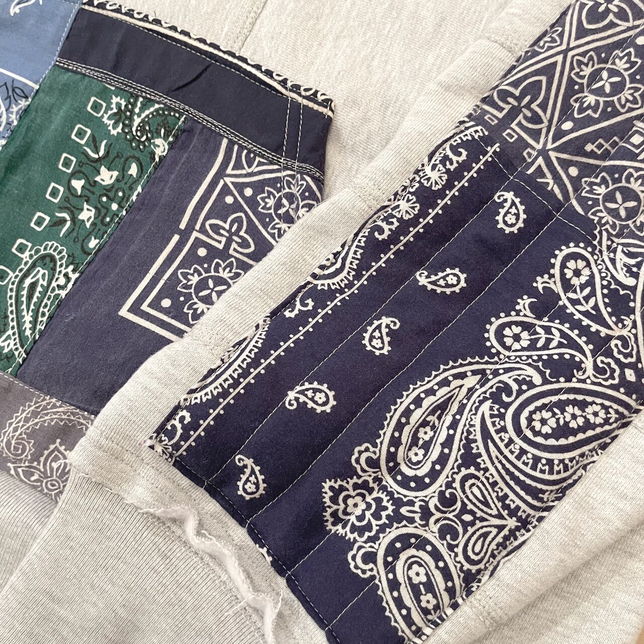 USEDのバンダナに中綿を入れてキルティングしたエルボーパッチや